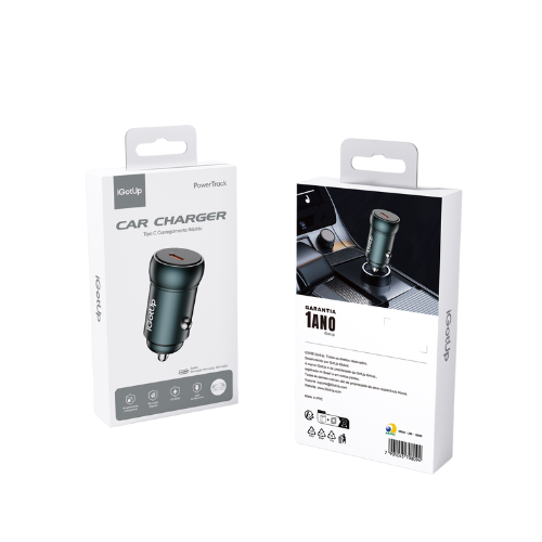 🚗⚡ Carregador Veicular iGotUp PowerTrack – Tipo C Carregamento Rápido